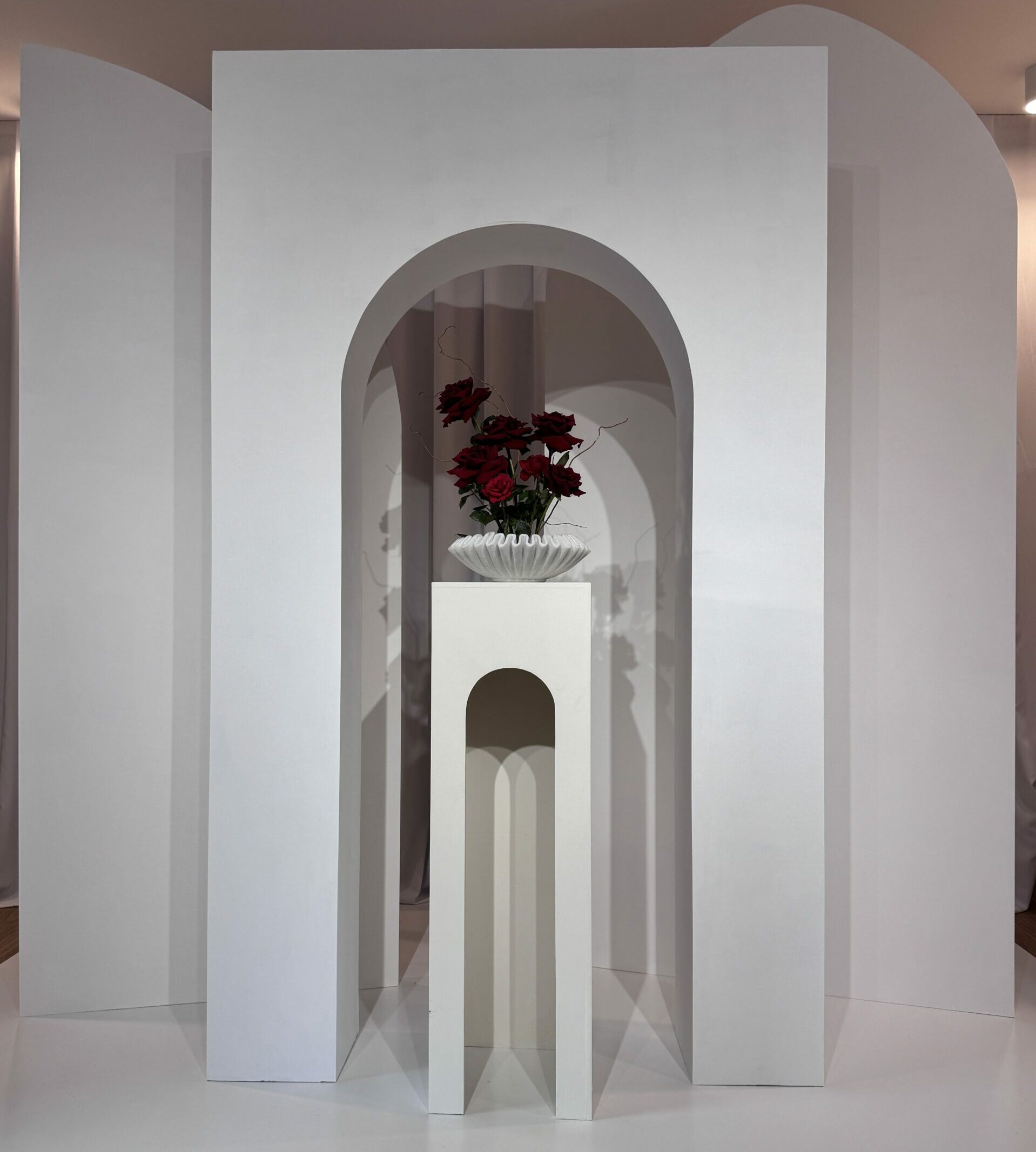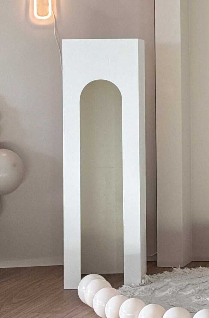 Ścianka z subtelnym, trójwymiarowym łukiem i zamkniętą środkową przestrzenią.