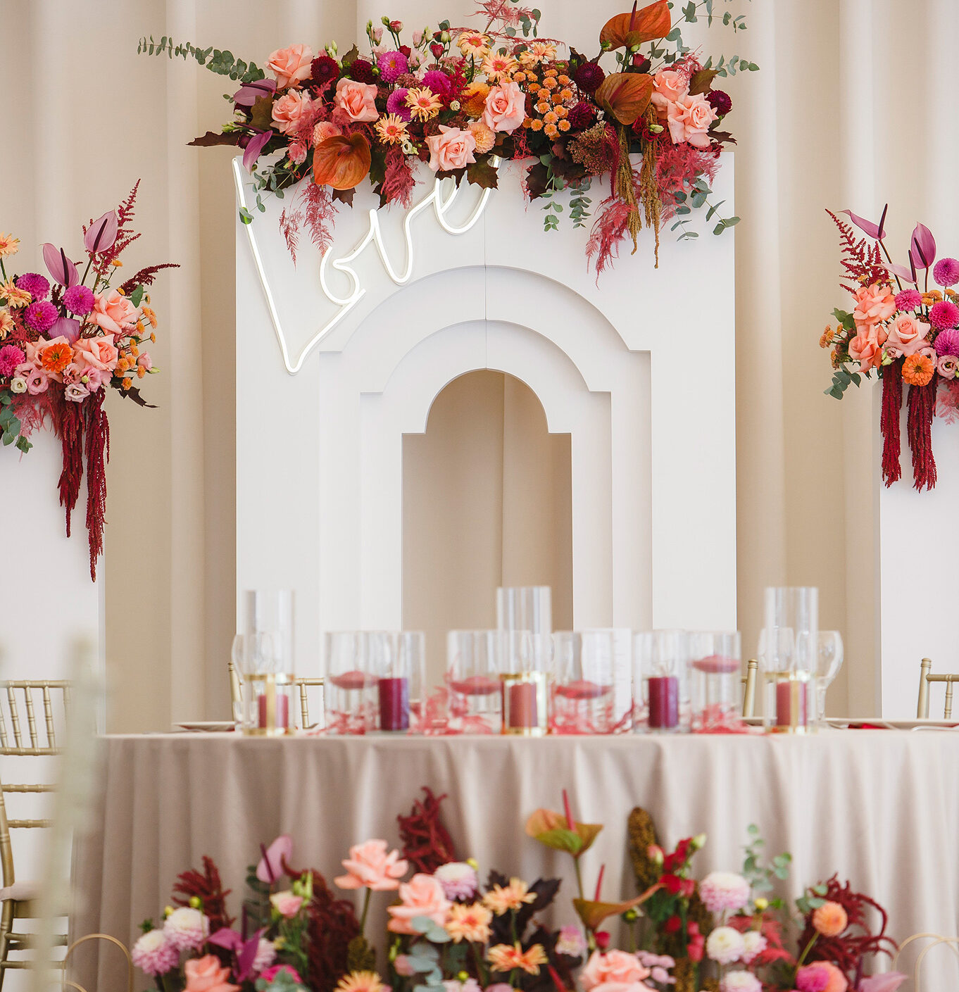 Projektujemy i tworzymy dekoracje, które są estetyczne, nowoczesne i pozbawione przesady. Stawiamy na szlachetne materiały, harmonijne kompozycje i subtelny luksus – taki, który nie krzyczy, lecz podkreśla charakter wydarzenia w sposób dojrzały i ponadczasowy.
